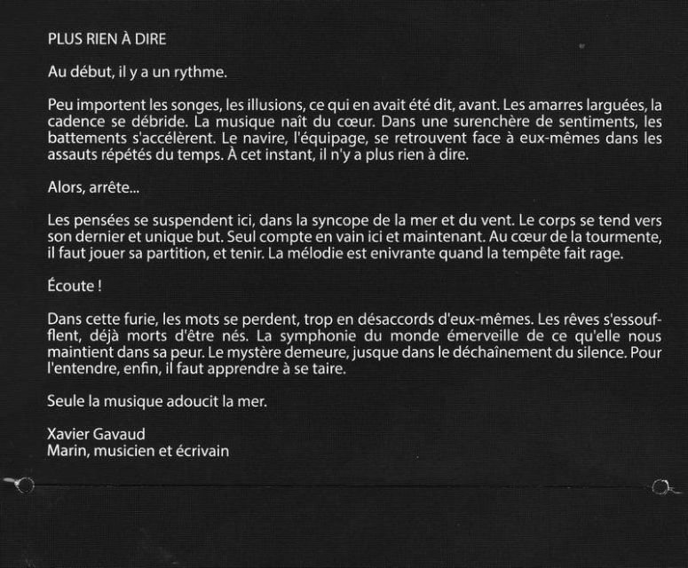 Les deux guitaristes et membres fondateurs de Misty Call sont des amis de longue date. Laurent Creff et Pierre-Marc Quintric développent tout un univers autour de leur musique folk/rock. Pour leur premier album Hundred Miles, sorti en 2011, de nombreux amis et artistes ont collaboré à l'illustration, l'iconographie et l'élaboration du livret. En plus de quelques photographies et d'une aide apportée pour leur scénographie, "Plus rien à dire" ouvre à ce monde par l'écriture.